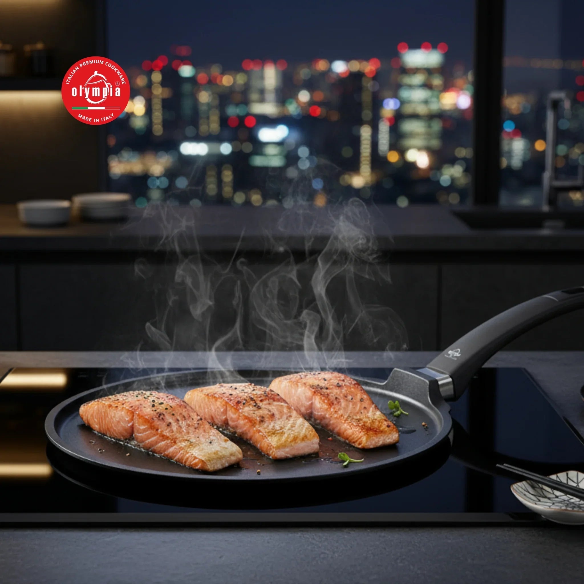 Fondo POWER INDUCTION triplo fondo ad alto spessore, indeformabile, con perfetta planarità ed aderenza al piano induzione che significa massima efficienza, risparmio di energia e perfetta distribuzione del calore. La miglior tecnologia per la cucina ad induzione.