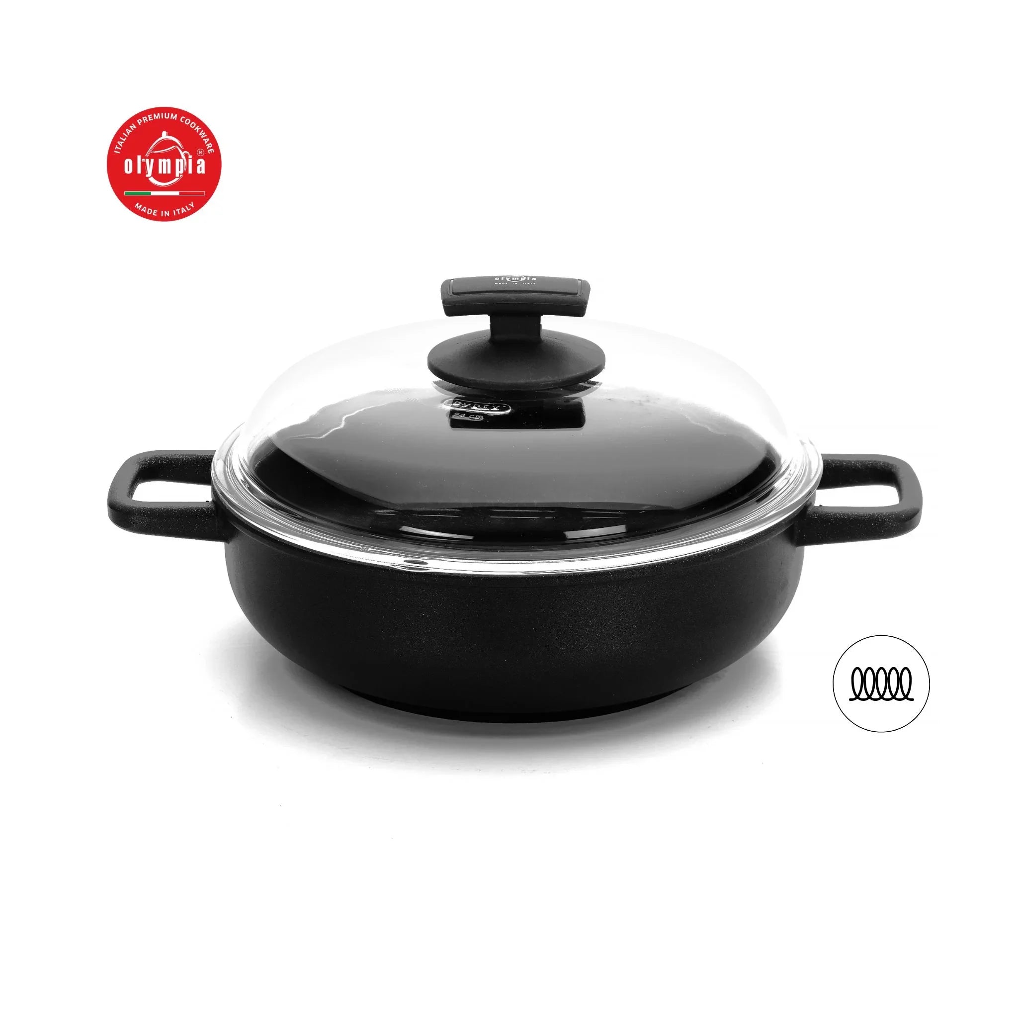 Tegame 2 maniglie, in alluminio pressofuso con rivestimento antiaderente DIAMANT+ multistrato rinforzato con polvere di diamante. Maniglie e corpo uni-pezzo. Grazie al triplo fondo POWER INDUCTION di alto spessore è possibile cucinare su tutti i fuochi inclusa l'induzione con ottimi risultati e un notevole risparmio di energia. Raggiunge la temperatura ideale in pochissimi secondi.